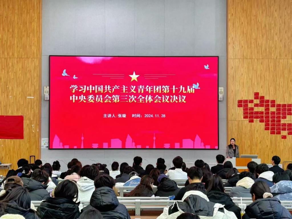 为深入贯彻落实中国共产主义青年团第十九届中央委员会第三次全体会议精神,引导广大团员青年坚定理想信念,勇挑时代重担,bat365中文官方网站积极组织开展专题团课学习活动,2024年11月28日,bat365中文官方网站在增信楼113举行以学习中国共产主义青年团第十九届中央委员会第三次全体会议决议为主题的团课。