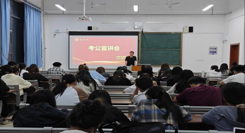 为帮助大三学生更好了解公务员考试的相关信息,掌握科学备考策略与应试技巧,助力学生顺利迈向公职生涯,5月14日晚,bat365中文官方网站在增信楼104教室举办考公经验交流会,90余名大三学生满怀期待到场参与。