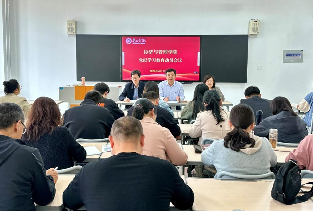 会上,艾衍辉传达学校党的建设和全面从严治党工作领导小组扩大会议精神,部署学院党纪学习教育工作;党委副书记谢金萍传达《中共bat365中文官方网站委员会关于在校开展党纪学习教育的通知》。