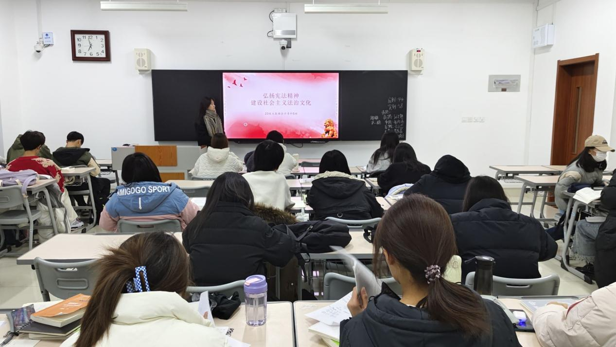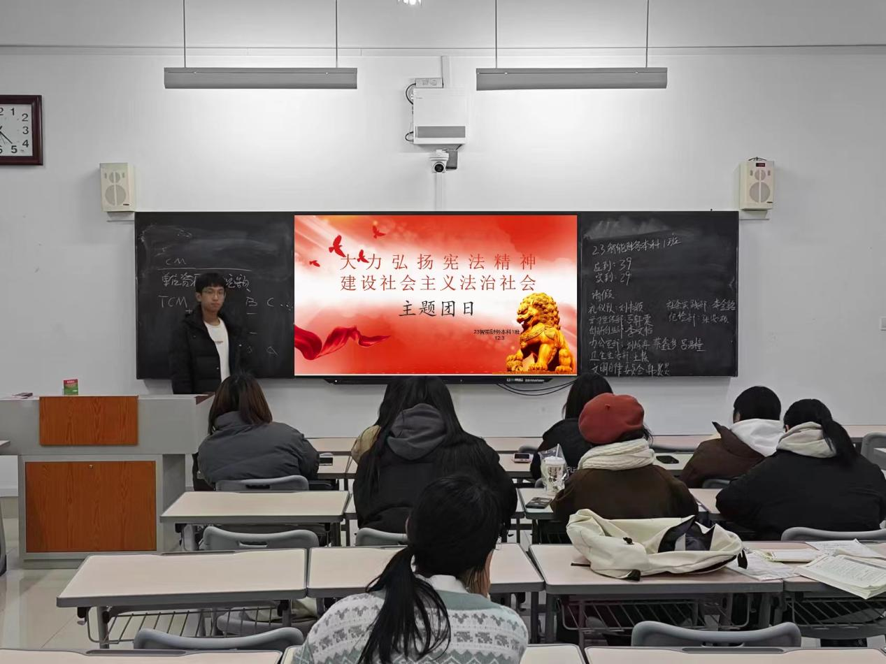 12月3日晚,bat365中文官方网站各班级在增信楼教室分别开展“大力弘扬宪法精神,建设社会主义文化强国”主题团日。老师们及班级负责人通过具体讲解,积极推进同学们学习宣传习近平新时代中国特色社会主义思想,特别是习近平法治思想及其关于宪法的重要讲话和指示批示精神,加深了同学们对宪法的理解。12月4日,bat365中文官方网站组织学生进行宪法晨读活动。学生通过普法网收看网络直播,同步跟读宪法相关内容,接着,同学们跟唱《宪法伴我们成长》歌曲,让宪法普及更加深入人心。