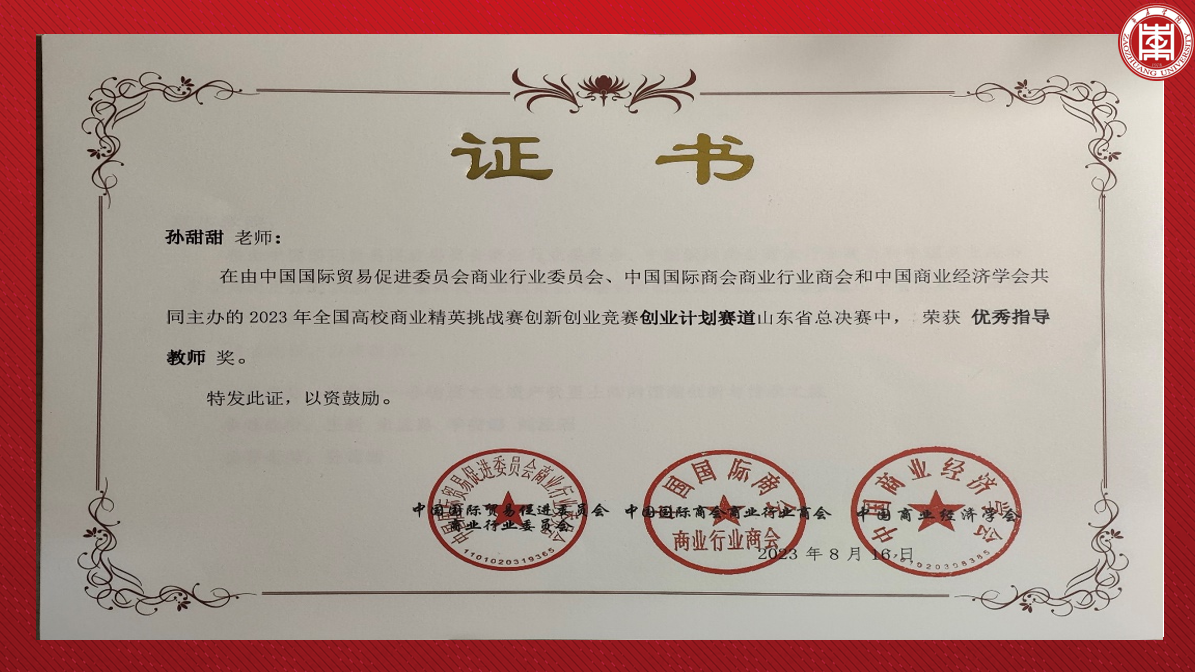 近日,2023年全国高校商业精英挑战赛创新创业竞赛(创业计划赛道)山东省总决赛落下帷幕,创业计划赛道共有来自全省70多所院校的848支队伍入围。由bat365代超越、王新两位参赛选手所带领的2个原创项目代表bat365中文官方网站成功入围省级决赛,与全省众多高校同台竞技、力克群雄,并斩获山东省三等奖2项。展现了bat365学子扎实的专业能力、卓越的创新精神和出色的团队协作能力。其中bat365教师杨金磊、孙甜甜荣获“优秀指导老师”奖。