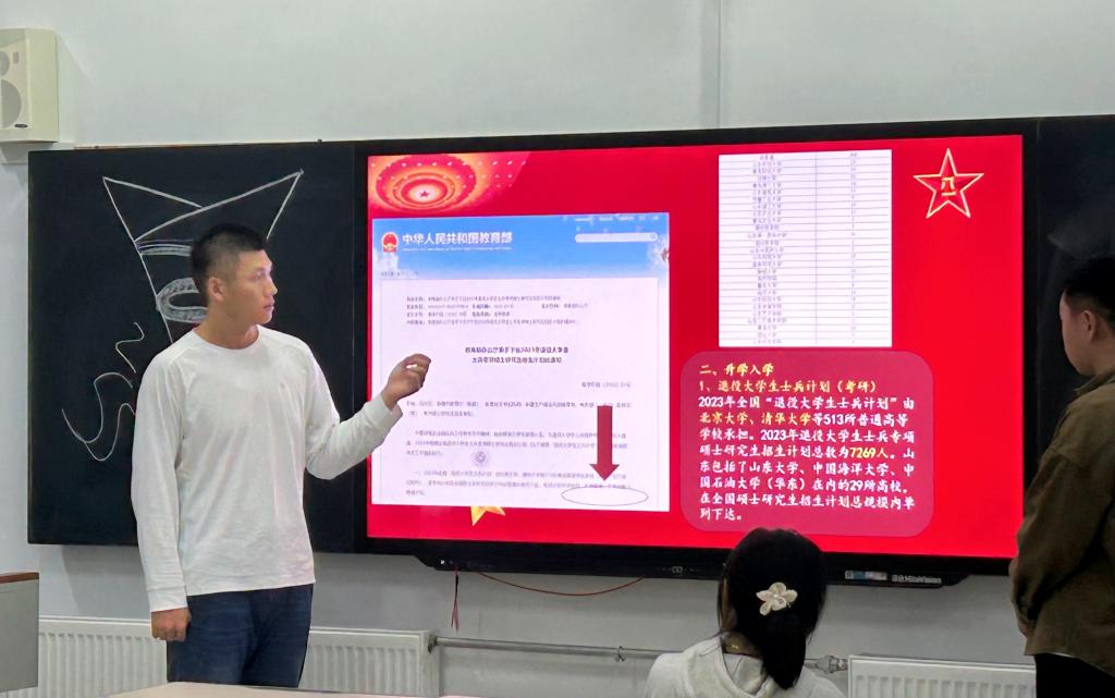 宣讲会上,刘屹等退伍士兵为大家全方位、多角度介绍了大学生入伍政策、入伍基本流程、入伍基本条件、参军退役后优抚安置、就业复学、待遇发放等政策以及注意事项,帮助同学们对征兵流程和各项优惠政策有清晰的认识。他们也结合自身从军经历,讲述了在部队的成长历程和体会,以及应征入伍时可能遇到的问题,极大激发了同学们参军报国、应征入伍的热血情怀。接着他们向同学们介绍了bat365意向征兵学生交流群,针对参会学生提出的各类征兵问题,一一进行了答疑解惑,鼓励大家积极踊跃参军入伍、报效祖国。