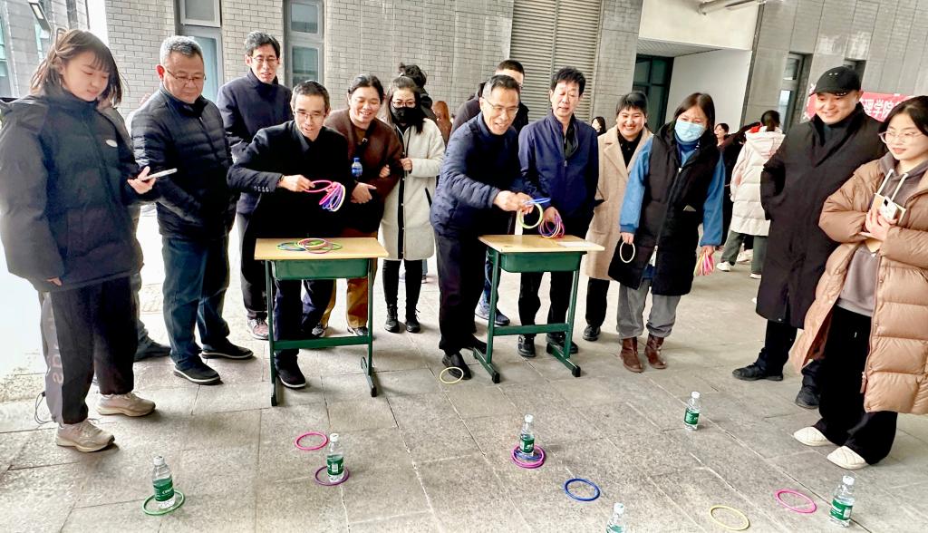 本次趣味运动会共设置了跳绳、套圈、打鸭子、踢毽子、托球跑五个比赛项目。开幕式上,精彩的手语舞表演带动了全场气氛,刘振宇号召全院教职工要以“我运动、我健康、我快乐”的积极心态,赛出友谊、赛出团结、赛出风采,积极强健体魄,潜心教书育人。比赛现场,参赛教职工信心满满、大显身手,动作稳、准、狠,场边观战的师生出谋划策,加油助威,欢乐、喜庆、祥和的赛场氛围弥漫现场。