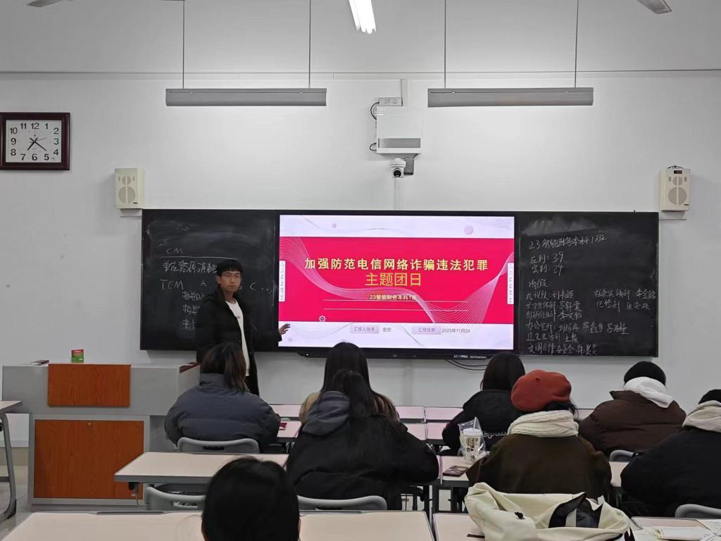 活动过程中,各班团支书首先给同学们介绍了何为诈骗,诈骗的基本含义,诈骗的类型有哪些,并给同学们播放了关于反诈的视频以及如何预防诈骗的视频,让大家进一步深入了解到了诈骗的危害性,随后以PPT的形式向同学们分析了各种电信诈骗手段,结合典型案例重点讲解了常见的校园诈骗,特别是针对大学生的诈骗,提出了相应的防诈骗策略,呼吁大家认真学习防诈知识,增强防范意识,提高防诈能力。