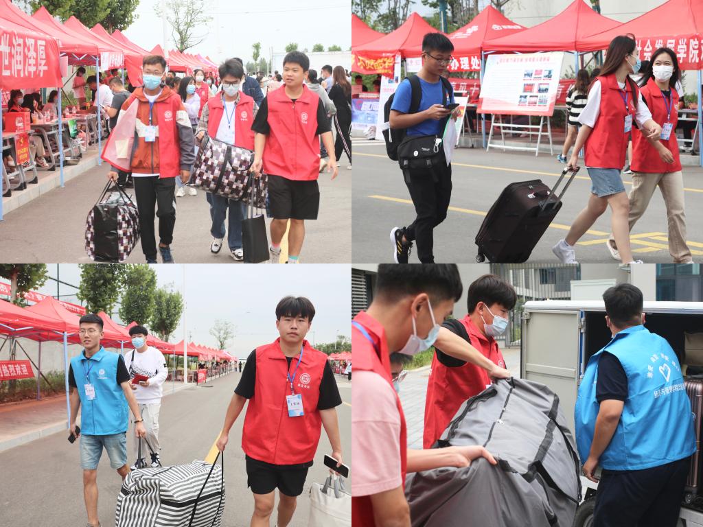 上午,来自不同地区的新生们陆续抵达学校,校门口、迎新点及宿舍楼的志愿者引导新生按照流程进行信息登记、材料领取等报到工作,学院领导及老师亲切关怀,热烈欢迎新同学的到来。