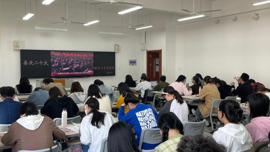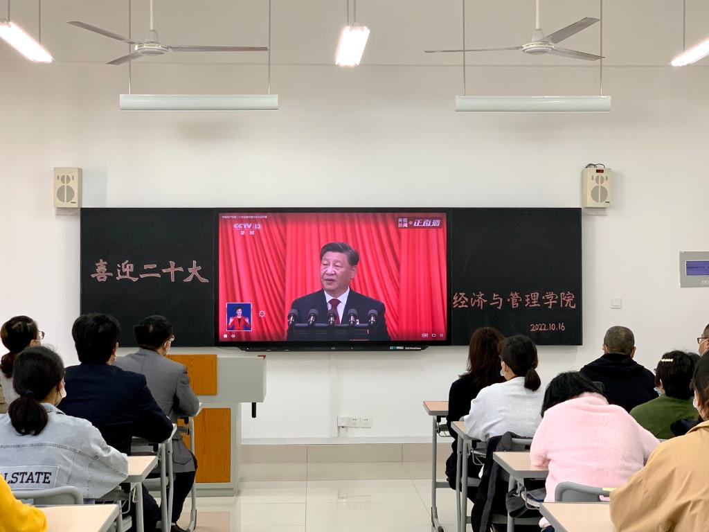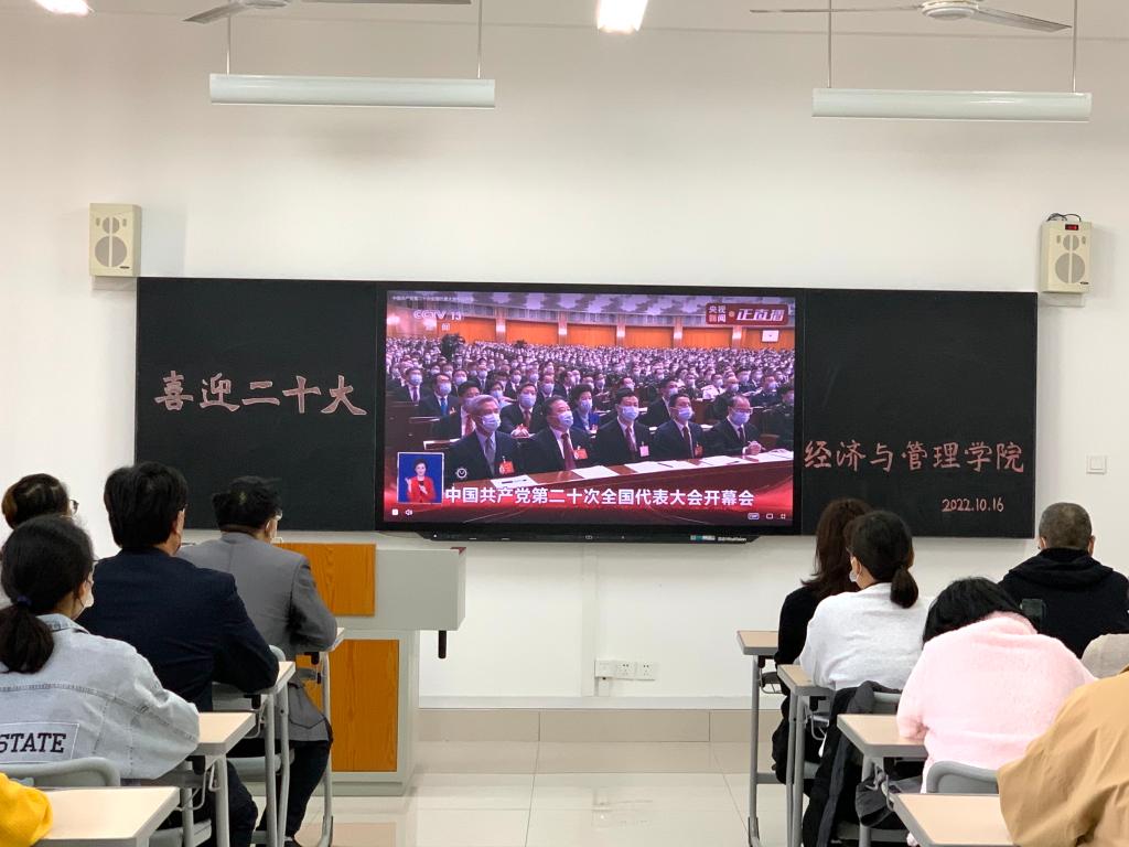 2022年10月16日上午10时,中国共产党第二十次全国代表大会北京人民大会堂隆重召开,bat365全体党员教师及学生党员在豁然楼A317室集中收看党的二十大开幕会盛况。各班级以主题班会的方式观看了开幕会,其他师生充分利用教室、宿舍网络、广播电视设施,学习会议精神,共同庆祝党的二十大胜利召开。