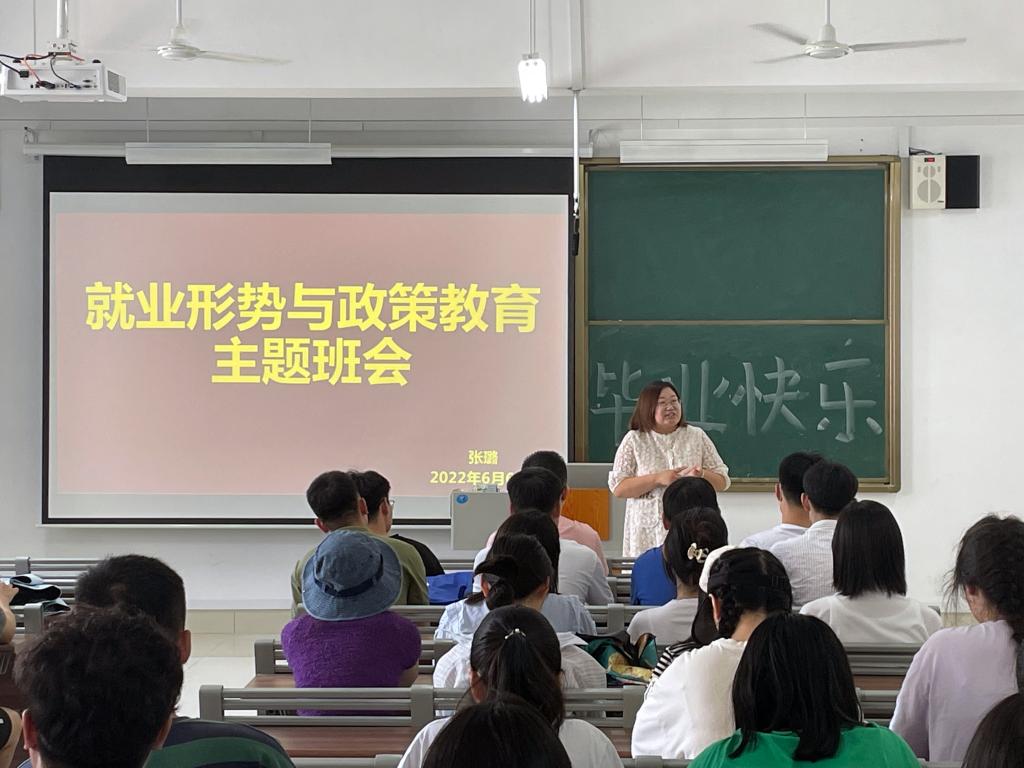 为让毕业生更好地了解就业形势和政策,引导毕业生树立正确的就业观和择业观。6月6日,bat365中文官方网站于增信楼3210、3211、3212召开就业形势与政策教育主题班会。班会由辅导员张璐主持,2018级毕业生、2020级部分学生参加。