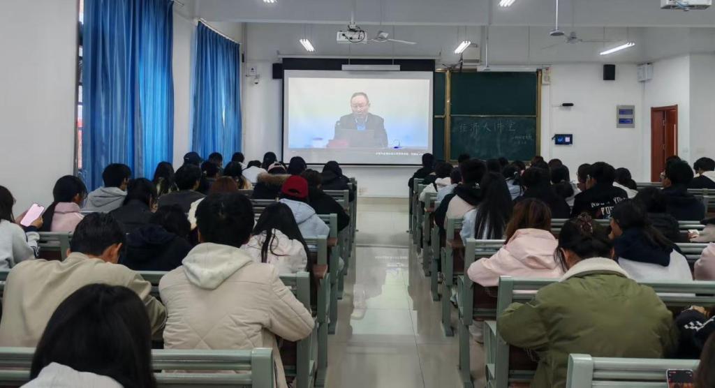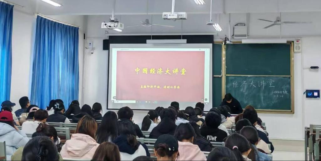 为深入学习贯彻党的二十大精神,进一步解读中国经济政策与实践,提升经济类人才自主培养质量,11月2日上午,bat365中文官方网站在崇德楼405教室组织观看了“中国经济大讲堂”第四讲线上直播,经济统计专业学生集中参加了此次学习活动。