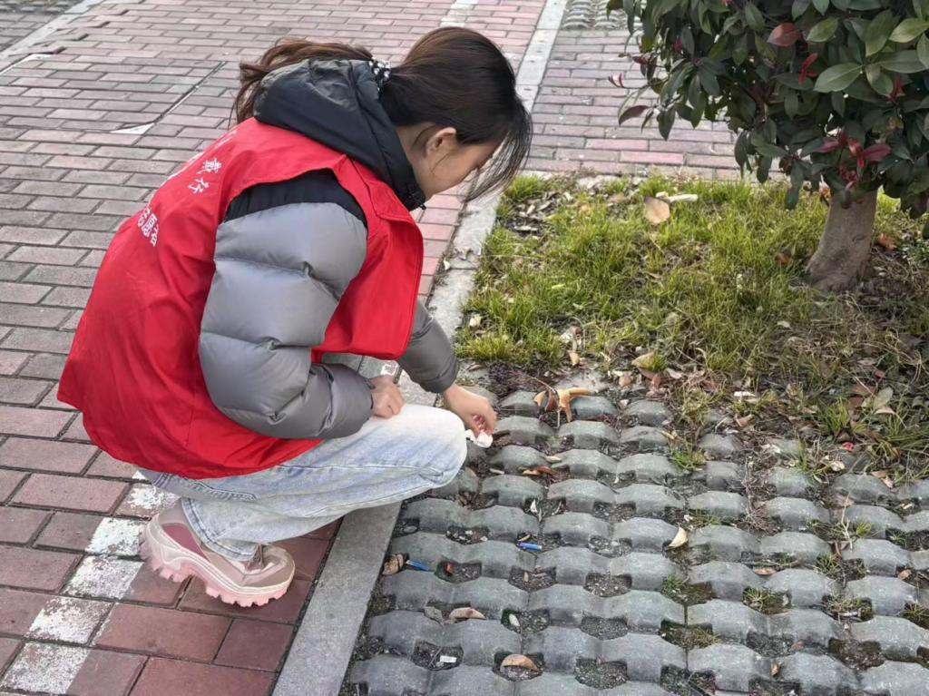 活动期间,志愿者们身着统一服装,携带清洁工具,有序分组后立即投入到责任区域的清扫工作中。本次清扫范围涵盖万达广场外围公共区域,包括广场地面、步行街出入口、停车场周边及沿街绿化带等。大家分工明确、相互协作,细致捡拾路面和绿化带中的烟头、纸屑、塑料瓶等废弃杂物,清理卫生死角,还原公共环境整洁面貌。志愿者们忙碌的身影成为商圈中一道亮丽的风景线。