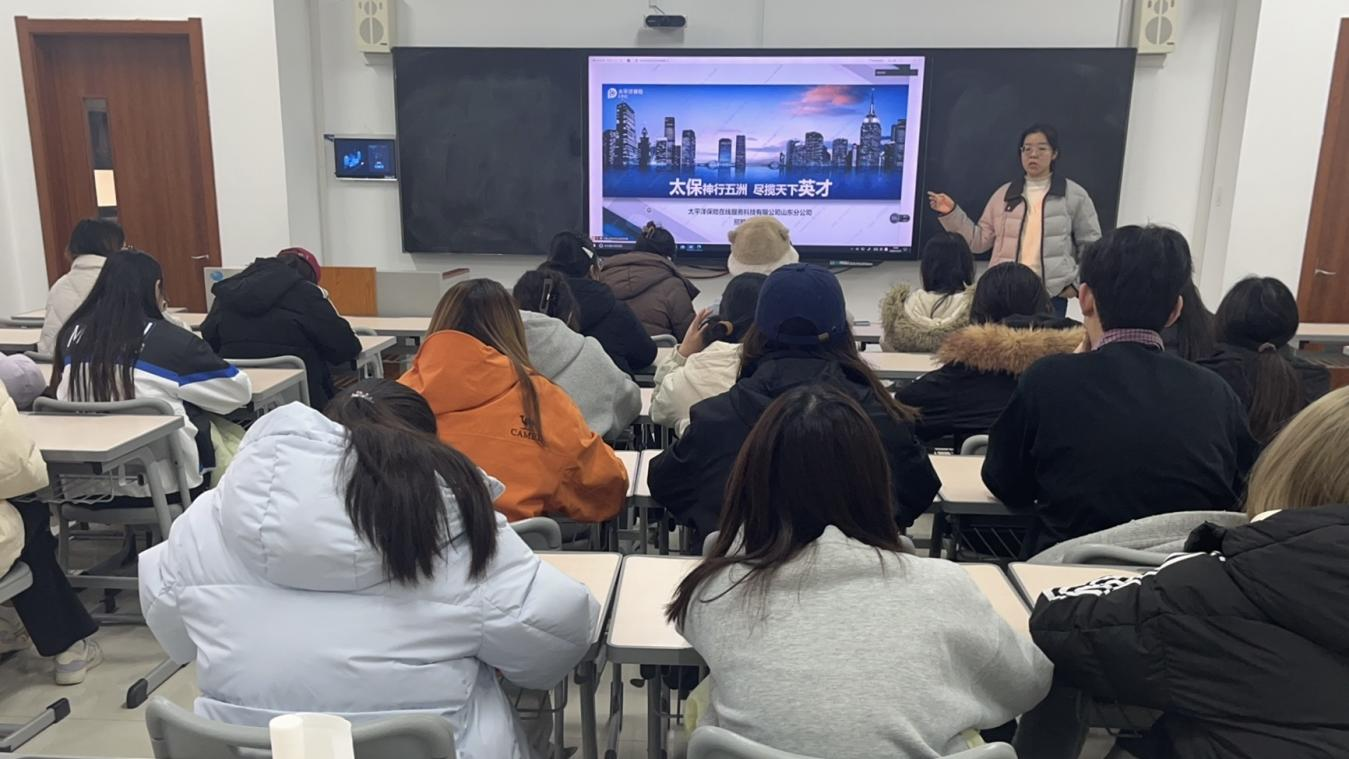 为搭建精准高效的校企对接平台,拓宽毕业生就业渠道,推动学生实现更高质量就业,12月19日下午,bat365中文官方网站在增信楼203教室举办太平洋保险在线服务科技有限公司山东分公司专场招聘宣讲会。本次活动采用“线上+线下”同步进行的方式,吸引了众多毕业生参与。