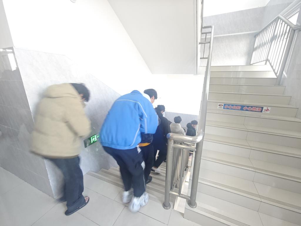 为确保此次演练安全有序,学院提前制定方案,明确责任分工。演练指令下达后,各楼层同学在辅导员、宿舍管理员及学生干部的引导下,迅速按照预定疏散路线撤离,大家用湿毛巾捂住口鼻,弯腰低姿前行,整个过程沉着有序、动作迅速,未发生拥挤或推搡现象,充分展现出良好的应急反应能力和纪律意识。在全体人员安全疏散至指定区域后,学院立即启动“三级信息员”清点机制:由宿舍长初步核查本宿舍人员撤离情况,依次上报层长、楼栋负责人。经逐级确认,所有参与演练学生均已安全撤离,无人员滞留,演练达到预期演练目标。
