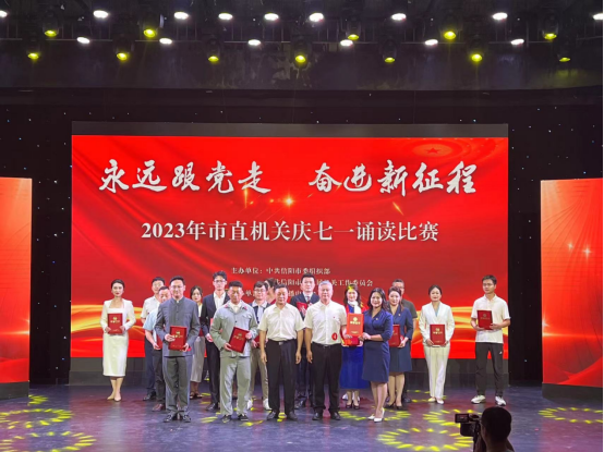2023年6月21日,市直机关“永远跟党走 奋进新征程”庆七一朗诵比赛在市电视台演播大厅举行,我校教师李秀林、周声代表学校参赛,荣获一等奖第一名的好成绩。