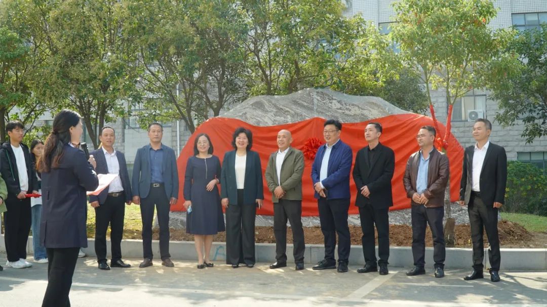 捐赠的纪念石重达数吨,外形古朴,上面镌刻着“学高为师”几个大字。在捐赠仪式上,蒋有红书记和余启宝校友共同揭开红绸,师生们一起培土固基,让纪念石安家落户在校园。