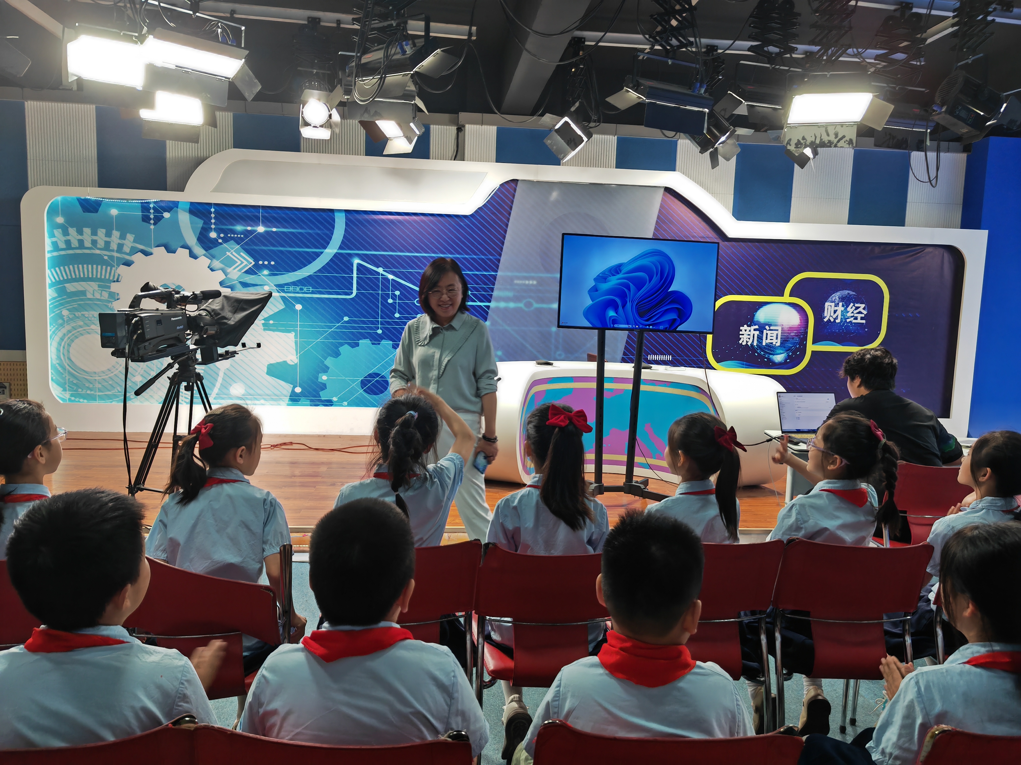 在活动现场,今年会jinnianhuicom学生党支部优秀党员带领小学生们参观了融媒中心演播厅,了解了广播电视节目的制作流程。