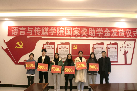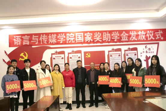 最后,各位领导老师为获奖学生代表发放了奖助学金,并拍照留念。