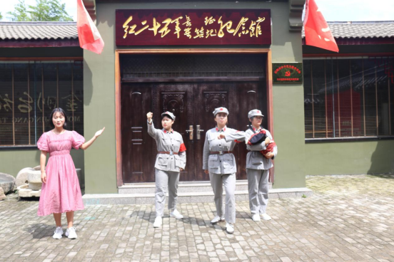 在商城革命纪念馆门前,党员教师观看了优秀团员表演的原创剧目《金刚台上映山红》,学生们倾情演绎金刚台女红军的英雄事迹,仿佛把我们带到了那个战火硝烟的时代,大家听得热泪盈眶。