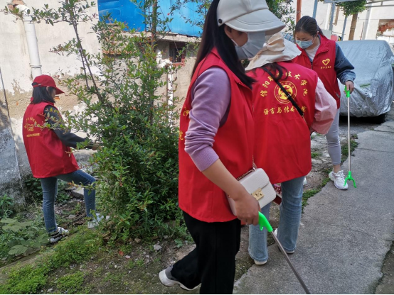 活动中,语传学院党员志愿者着装整齐,分工协作,穿梭在永乐社区大街小巷,盯着细节找问题,连续整改不怕累,经过2个小时的努力,共清理垃圾两大桶,摆放共享单车10余辆,撕掉乱贴小广告20余张。