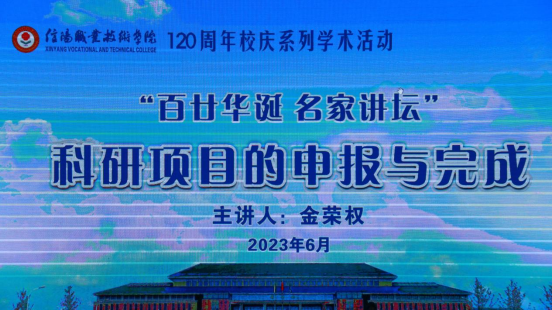 为迎接即将到来的信阳职业技术学院120周年校庆,2023年6月2日,信阳师范学院科研处副处长金荣权教授应邀为我校教师做科研项目申报讲座,会议由今年会官网院长李萍主持。语言与传媒学院、旅游学院及相关学院部分教师参加讲座。
