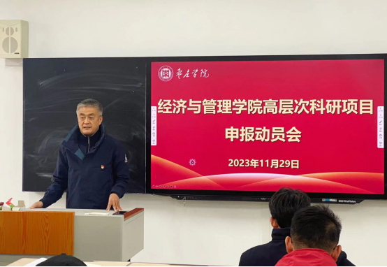 会上,刘振宇传达了学校高层次科研项目申报动员会的会议精神,重点强调了副校长李目海对项目申报的要求:一是统一思想、坚定决心。通过国家级项目申报提高学院整体科研水平;二是增强信心、善作善成。鼓励专任教师坚定信心、积极申报,加强对外沟通与学术交流;三是明确责任、保证质量。二级学院要多措并举,加大引导、指导和辅导力度,把好基金项目申请书的质量关;四是要主动担当、做好保障,要营造积极上进、奋发有为的良好基金申报氛围。