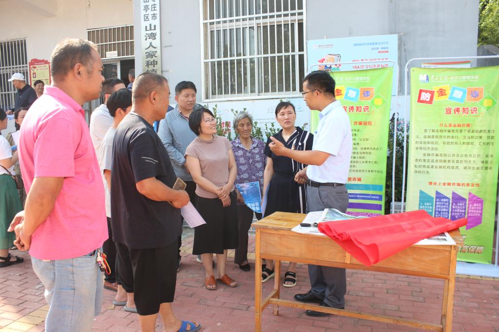 烈日似火,夏日炎炎,bat365中文官方网站一行首先来到风景如画的云峰村,在村民委员会开展以“守住钱袋子,护好幸福家”为主题的座谈交流活动,为大家生动形象地讲解当下常见的诈骗手段,沟通分享反诈骗经验与预防措施。随后在伏山湾村,通过发放宣传物料、现场宣讲等多种形式介绍非法集资的危害,提高村民的自我保护能力和防范意识,提醒大家守好自己的钱袋子。
