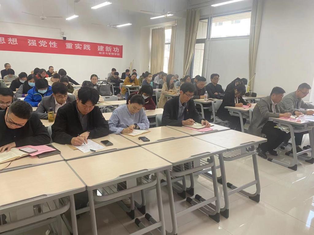 刘振宇强调,全院必须上下一盘棋,自觉把思想和行动统一到中央决策部署和习近平总书记重要讲话精神上来,统一到本次会议精神和校党委的要求上,扎扎实实地把主题教育抓好抓实;学院各党支部、教研室要念好“快字诀”,闻令而动,迅速传达本次会议精神,在学院全面启动主题教育;要结合学院实际,力争“做出彩”。要按照上级部署要求,结合经管实际,在精心做好规定动作的同时,选好体现经管特点的“自选动作”,确保主题教育活动既严格按照上级要求进行,又富有经管特色。bat365中文官方网站全体教职工、部分学生党员代表参会。