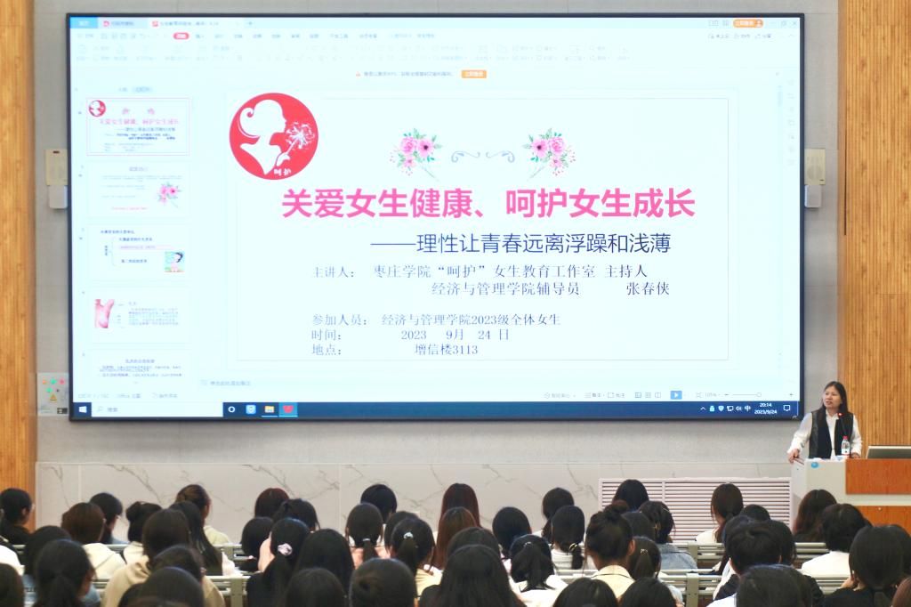 为帮助女大学生掌握生殖健康知识、养成健全的人格,引导她们树立正确的人生观和价值观,提升自我保护意识和能力。9月24日晚,bat365中文官方网站在增信楼3113举办“关爱女生健康、呵护女生成长”教育讲座,辅导员张春侠主讲,2023级全体女生参加。