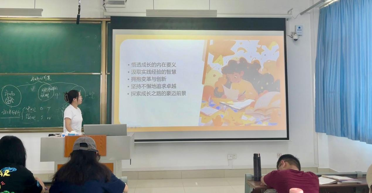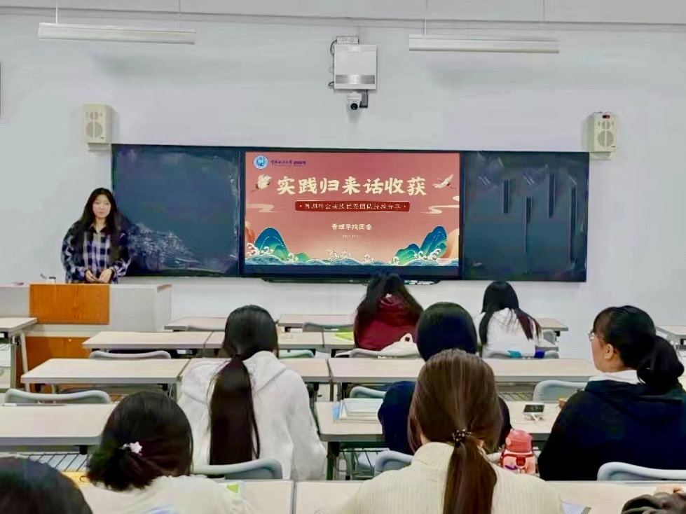 活动伊始,各班组织学生代表上台为同学们进行社会实践成果分享,他们讲述了实践中的精彩故事与成长收获,传授了实践活动经验,让同学们充分感受到社会实践的意义和志愿服务的精神力量。随后,学生代表对暑期社会实践的情况进行总结,剖析所存在的问题,探讨提升路径,并号召同学们用自己的青春活力为社会实践注入新动力,以奉献之精神服务社会。