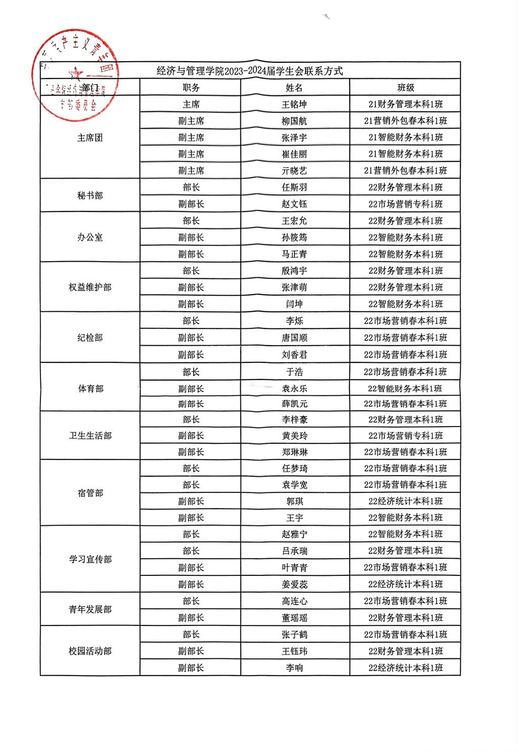 2023-2024届bat365中文官方网站学生会成员