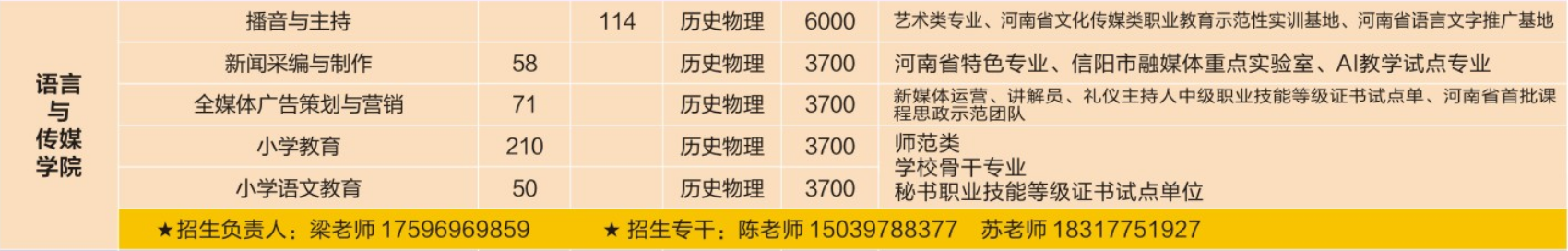 今年会官网现有在校生2900多人,开设有语文教育、小学教育、播音与主持、新闻采编与制作、全媒体广告策划与营销五个专业。各专业实训室、多媒体教室有十四个,校外实训基地30余个。信阳职业技术学院融媒体实训室获批信阳市重点实验室。